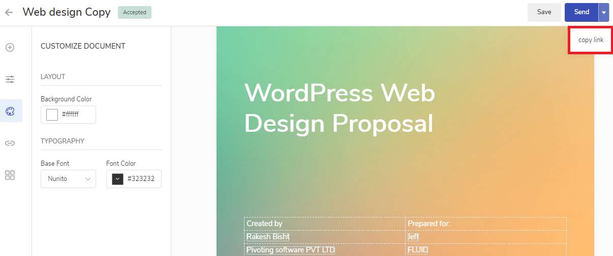 How can I get a shareable link for the proposal?
