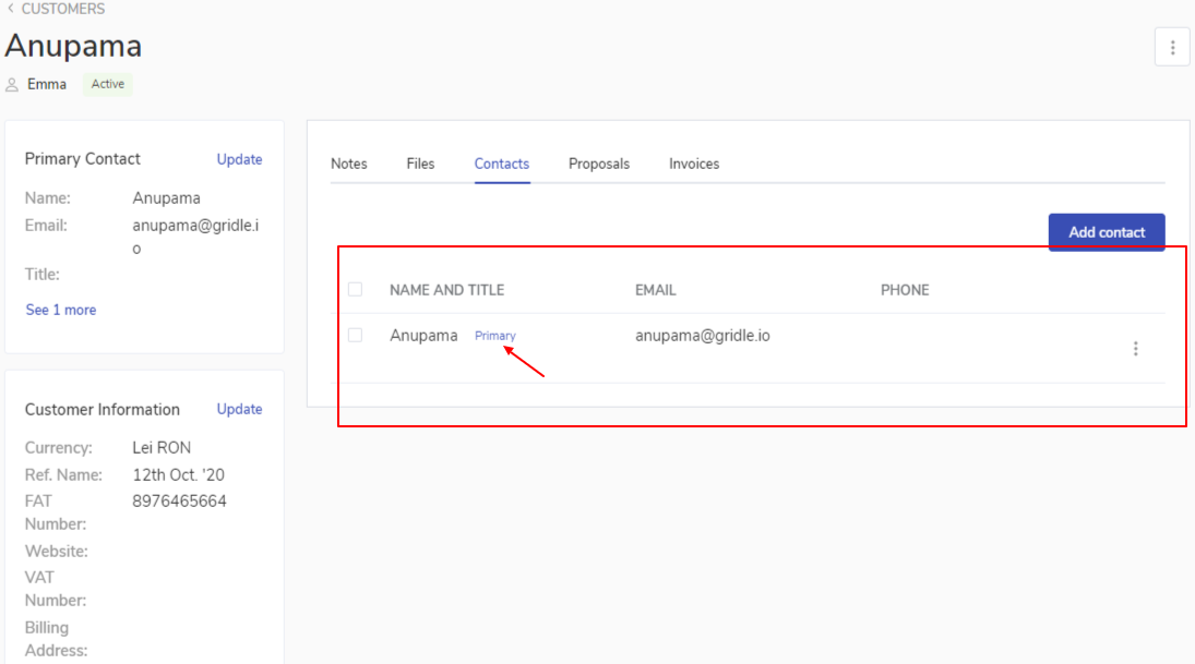 What is a Primary contact?